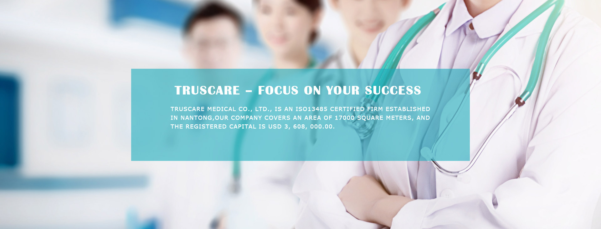 TrusCare Medical Co., LTD., is an ISO13485 certified firm established in Nantong, Jiangsu, China. It is a high-tech leading enterprise engaging in manufacturing and distributing a wide range of medical supplies. Our company covers an area of 17000 square meters, and the registered capital is USD 3, 608, 000.00.